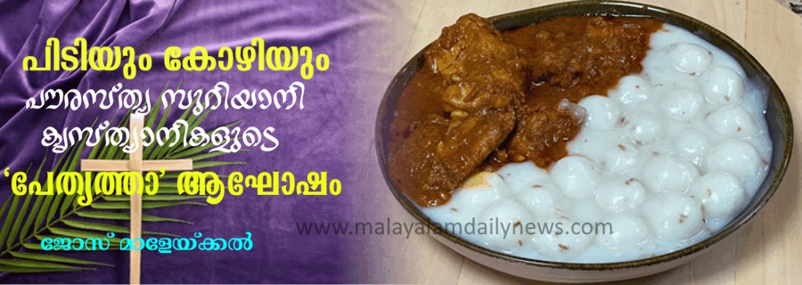 പേതൃത്താ ആഘോഷത്തിന്റെ ഏറ്റവും പ്രധാന ഹൈലൈറ്റ് അരിപ്പൊടി, തേങ്ങാപാല് മുതലായ സാധനങ്ങള് ചേര്ത്ത് പ്രത്യേകമായി തയാറാക്കുന്ന പിടിയും (rice balls in thick sauce), തേങ്ങാ വറുത്തരച്ചു വച്ച കോഴിക്കറിയും കൂട്ടിയുള്ള വിഭവസമൃദ്ധമായ സദ്യയാണു. പുതുതലമുറക്ക് അന്യമായിക്കൊണ്ടിരിക്കുന്ന ഈ വിഭവങ്ങള് സുറിയാനി ക്രിസ്ത്യാനികളുടെ പേതൃത്താ ആഘോഷത്തിന്റെ പ്രത്യേകതയായിരുന്നു.