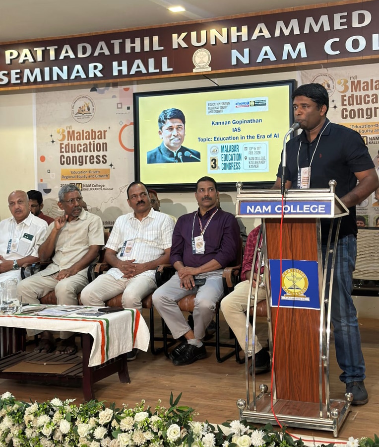 കോഴിക്കോട്: മനുഷ്യനെ വെറും യന്ത്രങ്ങളാക്കി മാറ്റുന്ന ആധുനിക കാലഘട്ടത്തിൽ, മാനവിക മൂല്യങ്ങളുള്ള മനുഷ്യനായി നിലകൊള്ളുക എന്നതാണ് പുതുതലമുറയ്ക്കുള്ള ഏറ്റവും വലിയ സന്ദേശമെന്ന് മുൻ ഐ.എ.എസ് ഉദ്യോഗസ്ഥൻ കണ്ണൻ ഗോപിനാഥൻ. മലബാർ എജ്യുക്കേഷൻ മൂവ്മെന്റും കല്ലിക്കണ്ടി എൻ.എ.എം. കോളേജും സംയുക്തമായി സംഘടിപ്പിച്ച മൂന്നാമത് മലബാർ എജ്യുക്കേഷൻ കോൺഗ്രസിന്റെ രണ്ടാം ദിനത്തിൽ മുഖ്യപ്രഭാഷണം നടത്തുകയായിരുന്നു അദ്ദേഹം. ഫെബ്രുവരി 13, 14 തീയതികളിലായി നടന്ന കോൺഗ്രസ് പ്രമേയ പ്രഖ്യാപനങ്ങളോടെ സമാപിച്ചു.