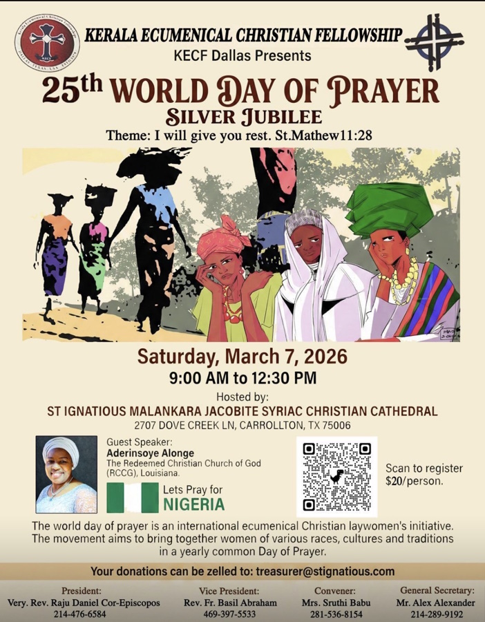പരിപാടിയിൽ പങ്കെടുക്കാൻ ആഗ്രഹിക്കുന്നവർക്ക് പോസ്റ്ററിലെ QR കോഡ് സ്കാൻ ചെയ്ത് രജിസ്റ്റർ ചെയ്യാവുന്നതാണ്. സംഭാവനകൾ treasurer@stignatious.com എന്ന വിലാസത്തിൽ സെല്ലെ (Zelle) ചെയ്യാമെന്നും സംഘാടകർ അറിയിച്ചു.