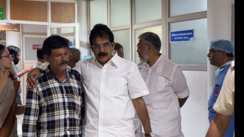 വണ്ടാനം മെഡിക്കൽ കോളേജ് ആശുപത്രിയിൽ ചികിത്സാപിഴവിനെ തുടർന്ന് വയറ്റിൽ കത്രിക കുടുങ്ങിയ നിലയിൽ കണ്ടെത്തി എറണാകുളം അമൃത ആശുപത്രിയിൽ ശസ്ത്രക്രിയയ്ക്ക് വിധേയയായ വീട്ടമ്മ ഉഷാ ജോസഫിനെ സന്ദർശിച്ച ശേഷം കെ.സി. വേണുഗോപാൽ എംപി മാധ്യമങ്ങളോട് പ്രതികരിച്ചു.