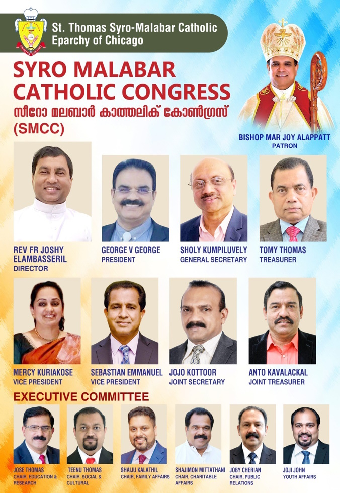ഹ്യൂസ്റ്റൺ : ഷിക്കാഗോ സിറോ മലബാർ രൂപതയുടെ അത്മായ സംഘടനായ “സിറോ മലബാർ കാത്തലിക് കോൺഗ്രസ് ” (എസ്.എം.സി.സി) പുതിയ ഭാരവാഹികളുടെ തെരഞ്ഞെടുപ്പ്, ഫെബ്രുവരി 21-)0 തീയതി ശനിയാഴ്ച ഹ്യൂസ്റ്റൺ സെയിന്റ് ജോസഫ് കത്തോലിക്ക ഫോറോന ദേവാലയ പാരിഷ് ഹാളിൽ കൂടിയ നാഷണൽ ജനറൽ കൗൺസിൽ യോഗത്തിൽ വച്ച് നടത്തപ്പെട്ടു.