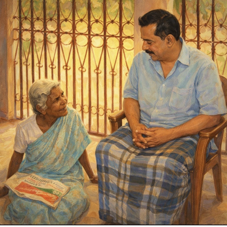 “ജാനകീ, നീ പഞ്ചായത്ത് പടിക്കല്‍ പോകണ്ടാ, ആ വളവിനു തേവുപാറാ മറിയക്കുട്ടിയുടെ വീട്ടില്‍ പ്രാര്‍ത്ഥന നടക്കുന്നുണ്ട്. ബാക്കി കാര്യം മറിയക്കുട്ടി സഹോദരി പറയും.”