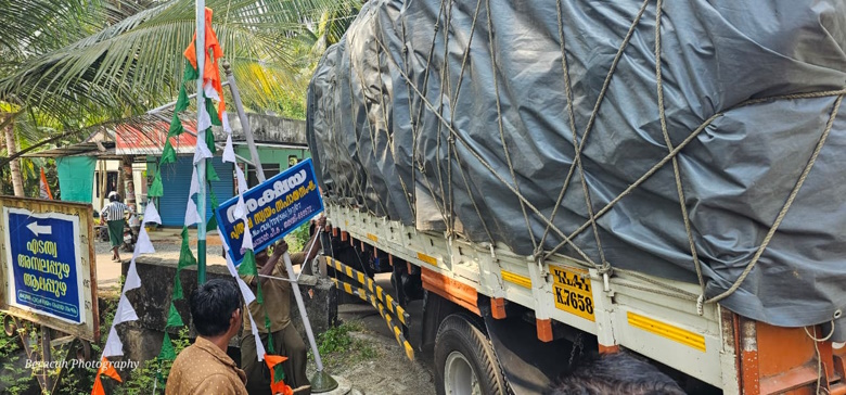 ഫോട്ടോ: എടത്വ – കാട്ടുനിലം റോഡും പാരേത്തോട് – വട്ടടി റോഡുകളും തമ്മിൽ ബന്ധിപ്പിക്കുന്ന മടയ്ക്കൽ കലുങ്കിലൂടെ തലവടി ചൂട്ടുമാലി പാടശേഖരത്തിന്റെ നെല്ല് കയറ്റിയ ലോറി മില്ലിലേക്ക് കടന്നു പോകുന്നു