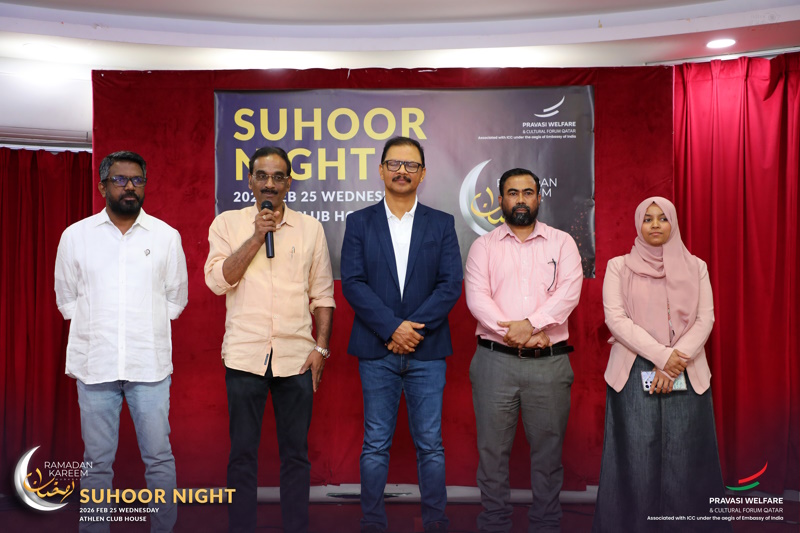 ഖത്തറിലെ ഇന്ത്യന് എംബസി അപക്സ് ബോഡി ഭാരവാഹികള്, വിവിധ സംഘടനാ നേതാക്കള്, ബിസിനസ് രംഗത്തെയും സാമൂഹിക സാംസ്കാരിക രഗത്തെയും പ്രമുഖര്, മാധ്യമ പ്രവര്ത്തകര് എനിവരുടെ സംഗമ വേദിയായി പ്രവാസി വെൽഫെയർ സംഘടിപ്പിച്ച സുഹൂര് നൈറ്റ്. ഐ.സി.സി പ്രസിഡണ്ട് എ.പി മണികണ്ഠന്, ഐ.സി.ബി.എഫ് പ്രസിഡണ്ട് ഷാനവാസ് ബാവ, ഐ.എസ്.സി പ്രസിഡണ്ട് ഇ.പി അബ്ദുറഹ്മാന് എന്നിവര് ആശംസയര്പ്പിച്ച് സംസാരിച്ചു. പ്രവാസി വെൽഫെയർ സംസ്ഥാന പ്രസിഡണ്ട് ആര് ചന്ദ്രമോഹന് അദ്ധ്യക്ഷത വഹിച്ചു. ക്യു.എഫ്.എം നെറ്റ്വര്ക്ക് സി.ഇ.ഒ അന്വര് ഹുസൈന് റമദാന് സന്ദേശം കൈമാറി. ജനറല് സെക്രട്ടറി ഷറഫുദ്ദീന് വടക്കാങ്ങര സ്വാഗതവും വൈസ് പ്രസിഡണ്ട് എ.ആര് അബ്ദുല് ഗഫൂര് സമാപന ഭാഷണവും നിര്വ്വഹിച്ചു. വനിതാ കൂട്ടായ്മയായ നടുമുറ്റം പുറത്തിറക്കിയ മാഗസിന് ‘ഇടം’ ചടങ്ങില് പ്രകാശനം ചെയ്തു. നടുമുറ്റം പ്രസിഡണ്ട് സന നസീമില് നിന്ന് ഐ.സി.സി പ്രസിഡണ്ട് എ.പി മണികണ്ഠന് ആദ്യ പ്രതി ഏറ്റുവാങ്ങി.…