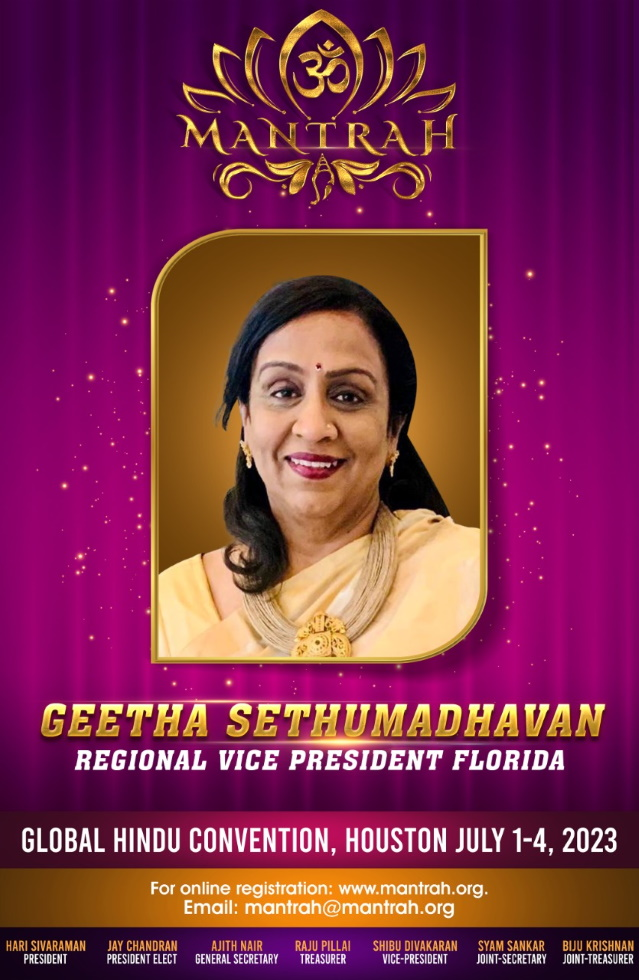 ഗീത സേതുമാധവൻ മന്ത്ര ഫ്ലോറിഡ റീജിയണൽ വൈസ് പ്രസിഡന്റ്