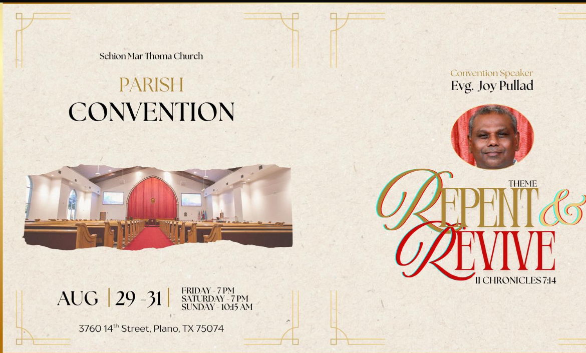 സെഹിയോൻ മാർത്തോമ ചർച്ച് പാരിഷ് കൺവെൻഷൻ ഓഗസ്റ്റ് 29 മുതൽ 31 വരെ