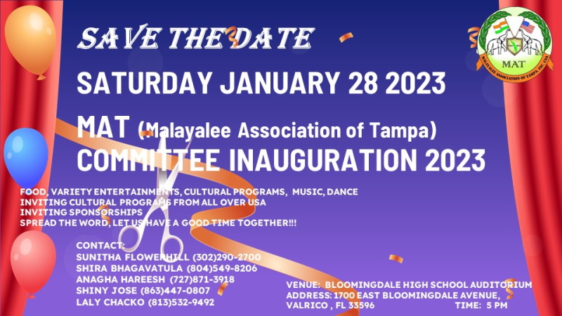 മലയാളി അസ്സോസിയേഷൻ ഓഫ് ടാമ്പാ (MAT) യുടെ 2023 ലെ കമ്മിറ്റിയില് വനിതാ നേതൃത്വം!