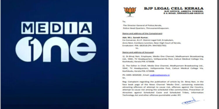 മണിപ്പൂര് കലാപം: മീഡിയാ വണ് സാമുദായിക സൗഹാർദ്ദം തകര്ക്കാന് ശ്രമിച്ചെന്ന് ബിജെപി; സംസ്ഥാന പോലീസ് മേധാവിക്ക് പരാതി ന്ല്കി