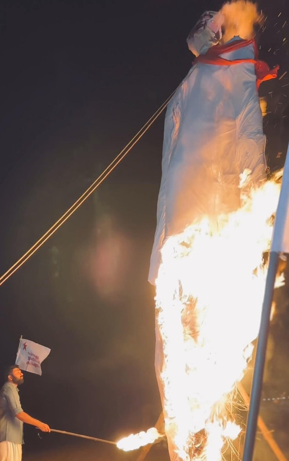 കണ്ണൂര്: സ്റ്റുഡന്റ്സ് ഫെഡറേഷൻ ഓഫ് ഇന്ത്യ (എസ്എഫ്ഐ) പ്രവർത്തകർ ഗവർണർ ആരിഫ് മുഹമ്മദ് ഖാനെതിരെ ഞായറാഴ്ച പയ്യാമ്പലം ബീച്ചിൽ 30 അടി ഉയരമുള്ള അദ്ദേഹത്തിന്റെ കോലം കത്തിച്ച് പ്രതിഷേധം ശക്തമാക്കി. സംസ്ഥാന സർവ്വകലാശാലകളിൽ ഇടപെടാനുള്ള ഗവർണറുടെ ശ്രമങ്ങൾക്കെതിരെ ശക്തമായ പ്രതിഷേധം രേഖപ്പെടുത്തി വൈകിട്ട് 6.30ഓടെയാണ് കോലം കത്തിച്ചത്. സർവ്വകലാശാലകളെ കാവിവൽക്കരിക്കാനുള്ള ആസൂത്രിത ശ്രമമാണ് നടക്കുന്നതെന്ന് എസ്എഫ്ഐ ജില്ലാ സെക്രട്ടറി ഇഎസ് സഞ്ജീവ് പറഞ്ഞു, ഇത് സംഘടന ശക്തമായി എതിർത്തു. ഗവർണർമാർ നിയമിക്കുന്ന വ്യക്തികൾ ഏജന്റുമാരായി പ്രവർത്തിക്കുന്നുവെന്നും ഇത്തരം ഇടപെടലുകൾ സംസ്ഥാനത്ത് വെച്ചുപൊറുപ്പിക്കില്ലെന്നും അദ്ദേഹം പറഞ്ഞു. വിദ്യാഭ്യാസ സ്ഥാപനങ്ങളുടെ സ്വയംഭരണാവകാശത്തിൽ വിട്ടുവീഴ്ച ചെയ്യാനുള്ള ഏതൊരു ശ്രമത്തെയും ചെറുക്കാനുള്ള വിദ്യാർത്ഥികളുടെ പ്രതിബദ്ധതയെ സൂചിപ്പിക്കുന്നു, കണ്ണൂർ ജില്ലയെ ഗവർണർ അപമാനിച്ചതിനെതിരായ ശക്തമായ പ്രതിഷേധമാണ് കോലം കത്തിച്ചതെന്ന് അദ്ദേഹം പറഞ്ഞു.