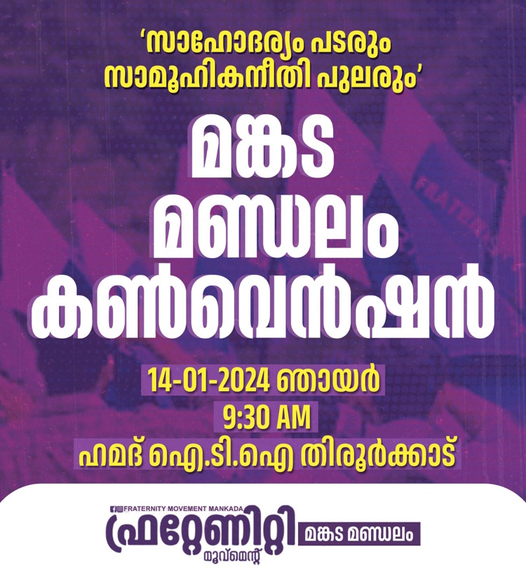 ഫ്രറ്റേണിറ്റി മൂവ്മെന്റ് മങ്കട മണ്ഡലം കൺവെൻഷൻ ഞായറാഴ്ച