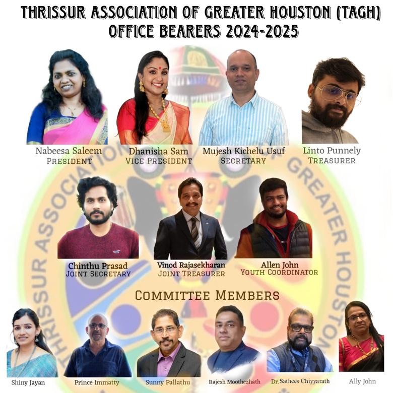 തൃശ്ശൂർ അസോസിയേഷന് ഓഫ് ഗ്രേറ്റര് ഹ്യൂസ്റ്റന്റെ പുതിയ ഭാരവാഹികള് ചുമതലയേറ്റു