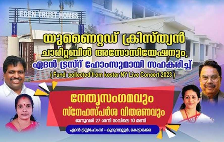 ന്യൂയോർക്ക്: യുണൈറ്റഡ് ക്രിസ്ത്യൻ ചാരിറ്റബിൾ അസോസിയേഷൻറെ നേതൃത്വത്തിൽ കഴിഞ്ഞ വർഷം സെപ്റ്റംബറിൽ ന്യൂ യോർക്കിൽ നടത്തിയ കെസ്റ്റർ ലൈവ് കൺസെർട്ടിൽ ജനങ്ങളിൽ നിന്നും ലഭിച്ച ധനസഹായം. നിര്ധനരായവർക്കും, നിർധനരായ കുട്ടികളുടെ പഠനത്തിനായും ജനുവരി 27 ന് കൊട്ടാരക്കരയിൽ ഏദൻ ട്രസ്റ്റ് ഹോംസിൽ വച്ച് വിതരണം ചെയ്യുന്നു. മുഖ്യ അഥിതി ആയിരിക്കുന്ന മാവേലിക്കര പാർലമെന്റ് അംഗവും ഏദൻ ട്രസ്റ്റ് ഹോംസിൻറെ രക്ഷാധികാരിയുമായ കൊടികുന്നിൽ സുരേഷ് എം. പി ഉൽഘാടനം ചെയ്യുന്ന യോഗത്തിൽ ഫൊക്കാന പ്രസിഡന്റ് ഡോ. ബാബു സ്റ്റീഫൻ, സാമൂഹ്യ പ്രവർത്തക ഡോ. എം. എസ് സുനിലിനെയും സമൂഹത്തിനു നൽകിയ നല്ല പ്രവർത്തനങ്ങൾക്കു ആദരിക്കുകയും ചെയ്യുന്നു. കഴിഞ്ഞ അനേക വർഷങ്ങളായി നിരവധി ക്രിസ്ത്യൻ പ്രോഗ്രാമുകൾ പല ബാനറുകളിൽ നടത്തുകയും അതിലൂടെ ലഭിക്കുന്ന വരുമാനം സാമൂഹ്യ നന്മയ്ക്കു വേണ്ടി ചിലവഴിക്കുകയും ചെയ്തിട്ടുണ്ട്. യുണൈറ്റഡ് ക്രിസ്ത്യൻ ചാരിറ്റി അസോസിയേഷൻ ഈ വർഷവും…