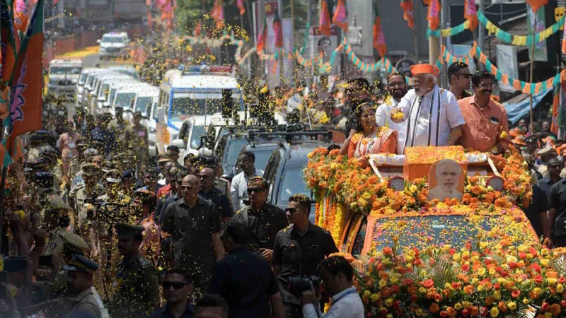 ലോക്സഭാ തിരഞ്ഞെടുപ്പ്: ചുട്ടുപൊള്ളുന്ന വേനൽച്ചൂടിൽ പ്രധാനമന്ത്രി മോദിയുടെ നേതൃത്വത്തിൽ പാലക്കാട് റോഡ്ഷോ