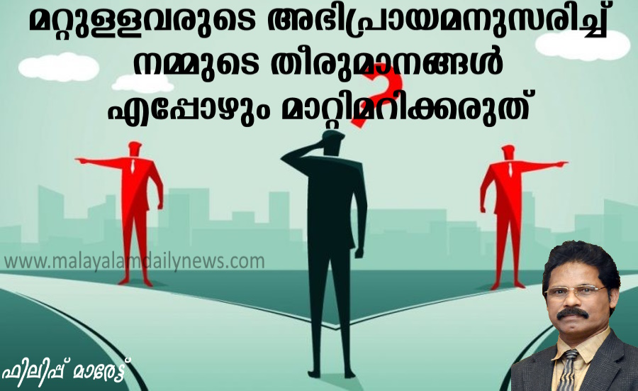 മറ്റുള്ളവരുടെ അഭിപ്രായമനുസരിച്ച് നമ്മുടെ തീരുമാനങ്ങൾ എപ്പോഴും മാറ്റിമറിക്കരുത് (ലേഖനം): ഫിലിപ്പ് മാരേട്ട്