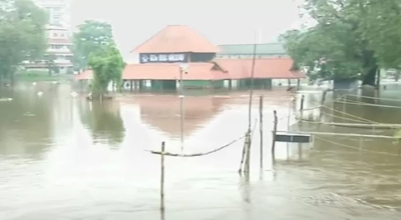 പെരിയാറിൽ ജലനിരപ്പ് ഉയരുന്നു; ആലുവ ശിവക്ഷേത്രവും മണപ്പുറവും വെള്ളം കയറി മുങ്ങി