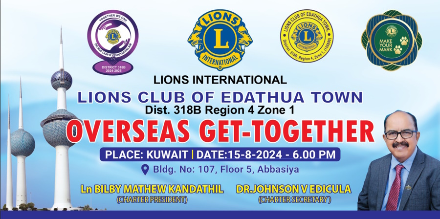 ലയൺസ് ക്ലബ് ഓഫ് എടത്വ ടൗൺ പ്രവാസി കുടുംബ സംഗമവും സ്വാതന്ത്ര്യം ദിനാഘോഷവും അബ്ബാസിയയിൽ