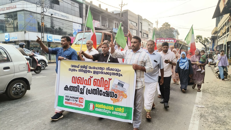 വഖഫ് ബില്ല് കത്തിച്ച് വെൽഫെയർ പാർട്ടിയുടെ പ്രതിഷേധം