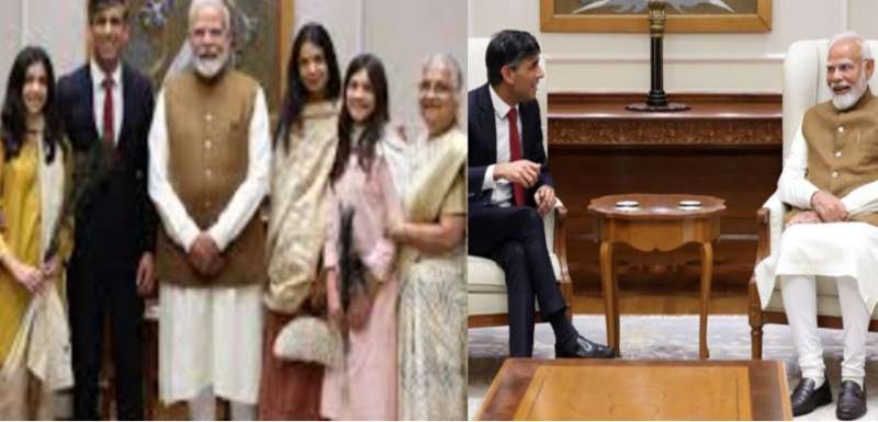 മുന് ബ്രിട്ടീഷ് പ്രധാനമന്ത്രി ഋഷി സുനക് കുടുംബത്തോടൊപ്പം പ്രധാനമന്ത്രി മോദിയെ കണ്ടു; ഉഭയകക്ഷി ബന്ധത്തിന് ഊന്നൽ നൽകി