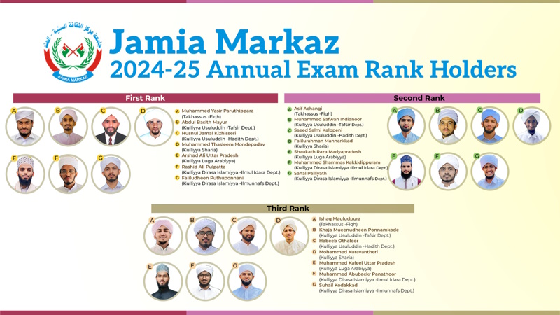 ജാമിഅഃ മർകസ്: 2024-25 വർഷത്തെ ഫൈനൽ പരീക്ഷാ ഫലം പ്രസിദ്ധീകരിച്ചു