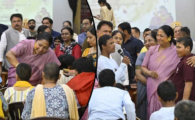 ആശ കിരൺ ഷെൽട്ടർ ഹോമിൽ കുട്ടിളോടൊപ്പം ഡൽഹി മുഖ്യമന്ത്രി രേഖ ഗുപ്ത ഹോളി ആഘോഷിച്ചു