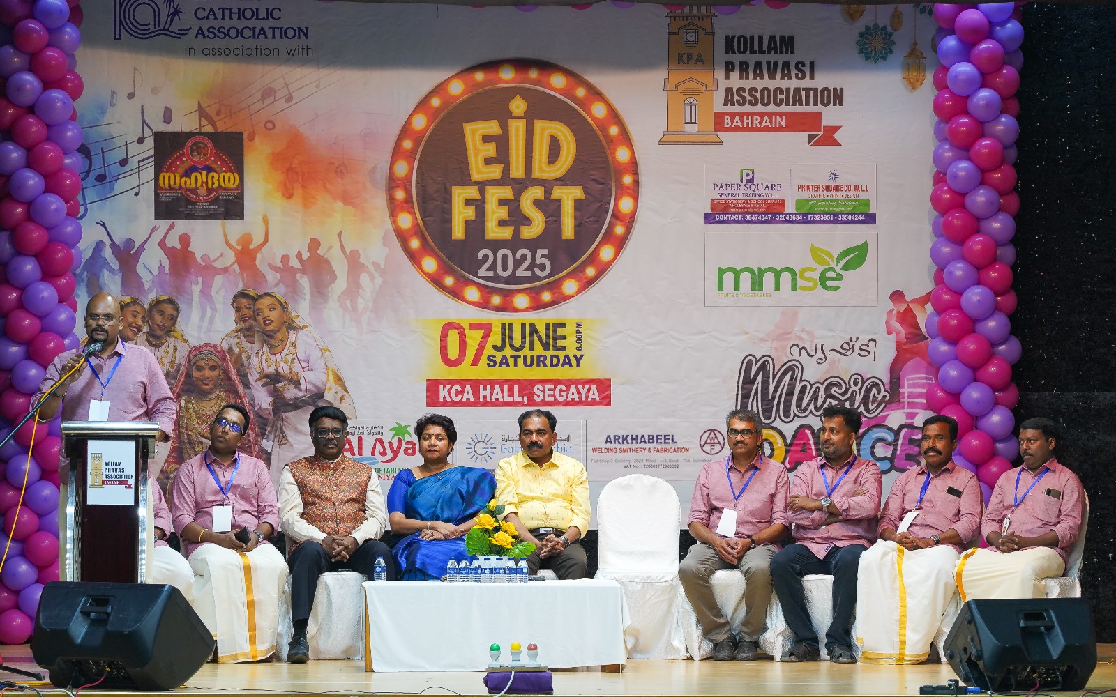 ബഹ്റൈന്: കൊല്ലം പ്രവാസി അസോസിയേഷൻ ഈദ് ഫെസ്റ്റ് 2025 എന്ന പേരിൽ ഈദ് ആഘോഷം സംഘടിപ്പിച്ചു. ആഘോഷത്തിന്റെ ഭാഗമായി ബഹ്റൈനിലെ പ്രമുഖ ടീമുകള് പങ്കെടുത്ത ഒപ്പന മത്സരവും, കലാ സാംസ്കാരിക വിഭാഗമായ കെ.പി.എ. സൃഷ്ടി അംഗങ്ങള് അവതരിപ്പിച്ച മ്യൂസിക്കൽ ഡാൻസ് ഷോയും ഈദ് ആഘോഷ രാവിനെ വര്ണ്ണാഭമാക്കി. കെ.പി.എ പ്രസിഡന്റ് അനോജ് മാസ്റ്റർ അധ്യക്ഷത വഹിച്ച ചടങ്ങിൽ ജനറൽ സെക്രട്ടറി പ്രശാന്ത് പ്രബുദ്ധൻ സ്വാഗതവും, ഈദ് ഫെസ്റ്റ് പ്രോഗ്രാം ജനറൽ കൺവീനർ ഷമീർ സലിം ആമുഖ പ്രസംഗവും നടത്തി. പ്രമുഖ മാധ്യമപ്രവർത്തകയായ രാജി ഉണ്ണികൃഷ്ണൻ ഉദ്ഘാടനം നിർവഹിച്ചു. കെ.സി.എ. പ്രസിഡന്റ് ജയിംസ് ജോൺ മുഖ്യാതിഥിയായ ചടങ്ങില് ബഹ്റൈൻ കെ.എം.സി.സി. ഓർഗനൈസിംഗ് സെക്രട്ടറി ഗഫൂർ കൈപ്പമംഗലം ഈദ് സന്ദേശം നൽകി. കെ പി എ വൈസ് പ്രസിഡന്റ് കോയിവിള മുഹമ്മദ് കുഞ്ഞു, സെക്രട്ടറിമാരായ അനിൽകുമാർ, രജീഷ് പട്ടാഴി ,…