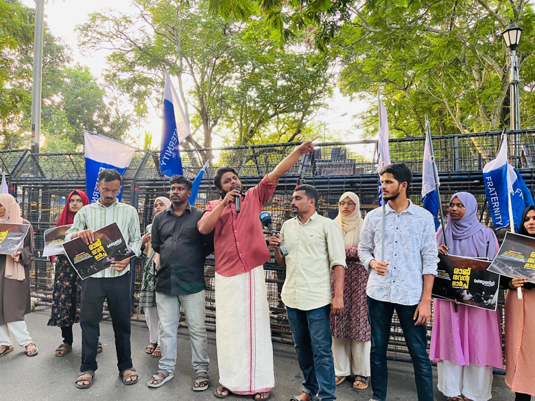 തിരുവനന്തപുരം: ഭാരതാംബ ചിത്രത്തിൻ്റെ മറവിൽ ഗവർണർ നടത്തുന്ന ഹിന്ദുത്വവത്ക്കരണ ശ്രമങ്ങൾക്കെതിരെ ഫ്രറ്റേണിറ്റി മൂവ്മെൻ്റ് സംസ്ഥാന കമ്മിറ്റി രാജ്ഭവനിലേക്ക് പ്രതിഷേധേ മാർച്ച് സംഘടിപ്പിച്ചു. മ്യൂസിയം പോലീസ് സ്റ്റേഷൻ പരിസരത്ത് നിന്നാരംഭിച്ച മാർച്ച് രാജ്ഭവന് മുന്നിൽ പോലീസ് തടഞ്ഞു. തുടർന്ന് നടന്ന പ്രതിഷേധ സംഗമം സംസ്ഥാന പ്രസിഡൻ്റ് നഈം ഗഫൂർ ഉദ്ഘാടനം ചെയ്തു. ഗവർണറുടെ ഹിന്ദുത്വ തിട്ടൂരങ്ങളെ വിദ്യാർത്ഥി – യുവജനങ്ങളെ അണിനിരത്തി ചെറുത്ത് തോൽപ്പിക്കുമെന്ന് അദ്ദേഹം പറഞ്ഞു. കാവി അജണ്ടകൾ കേരള മണ്ണിൽ നടപ്പാവില്ല. രാജ്ഭവനെയും സർവകലാശാലകളെയും ആർ.എസ്.എസ് ശാഖകളാക്കാമെന്നത് ആർലേക്കറുടെ വ്യാമോഹം മാത്രമാണ്. ആരിഫ് മുഹമ്മദ് ഖാനെ വെച്ച് കേരളത്തിൽ നടപ്പാക്കാൻ ശ്രമിച്ച അജണ്ടകൾ ആർലേക്കറെ വെച്ച് കൂടുതൽ ശക്തമായി നടപ്പാക്കാനാണ് കേന്ദ്ര സർക്കാർ പദ്ധതിയെന്നും നഈം ഗഫൂർ ചൂണ്ടിക്കാട്ടി. സംസ്ഥാന ജനറൽ സെക്രട്ടറി ഗോപു തോന്നക്കൽ അധ്യക്ഷത വഹിച്ചു. ഷാഹിൻ തൻസീർ, ലമീഹ് ഷാക്കിർ, നഈമ,…