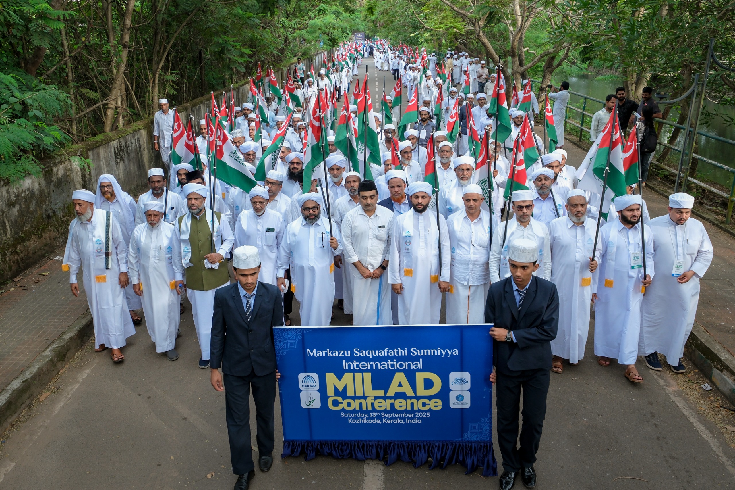 കോഴിക്കോട്: മുഹമ്മദ് നബിയുടെ 1500-ാമത് ജന്മദിനത്തിന്റെ ഭാഗമായി 1500 കലാ പ്രതിഭകൾ അണിനിരന്ന വർണാഭമായ ഘോഷയാത്രയോടെ അന്താരാഷ്ട്ര മീലാദ് സമ്മേളനത്തിന് തുടക്കം. സുന്നി ജംഇയ്യത്തുൽ മുഅല്ലിമീൻ കോഴിക്കോട് ജില്ലാ കമ്മിറ്റിയുടെ പങ്കാളിത്തത്തോടെ നടന്ന ഘോഷയാത്രക്ക് സാദാത്തുക്കളും പ്രാസ്ഥാനിക നേതാക്കളും നേതൃത്വം നൽകി. മർകസ് കോംപ്ലക്സ് പരിസരത്തു നിന്ന് ആരംഭിച്ച് അരയിടത്തുപാലം, മിനിബൈപ്പാസ് വഴി സമ്മേളന നഗരിയായ കാലിക്കറ്റ് ട്രേഡ് സെന്ററിൽ റാലി സമാപിച്ചു. പരമ്പരാഗത ബൈത്തുകളുടെയും മദ്ഹ് ഗാനങ്ങളുടെയും അകമ്പടിയോടെ താളപ്പെരുക്കങ്ങൾ തീർത്ത് ഉയർന്നും താഴ്ന്നും ചെരിഞ്ഞും ചുവടുകൾ വെച്ചു ദഫ്മുട്ടി നീങ്ങിയ സംഘങ്ങൾ നഗരത്തിൽ സമ്മേളനത്തിന്റെ ഓളം സൃഷ്ടിച്ചു. വ്യത്യസ്ത വസ്ത്രാലങ്കാരങ്ങളും കൊടിതോരണങ്ങളും വൈവിധ്യമാർന്ന പ്രകടനങ്ങളും ഘോഷയാത്രക്ക് മിഴിവേകി. മർകസ് ഡയറക്ടർ ജനറൽ സി മുഹമ്മദ് ഫൈസി, വിപിഎം ഫൈസി വില്യാപ്പള്ളി, അബൂ ഹനീഫൽ ഫൈസി തെന്നല, ഡോ. മുഹമ്മദ് അബ്ദുൽ ഹകീം അസ്ഹരി, സയ്യിദ്…