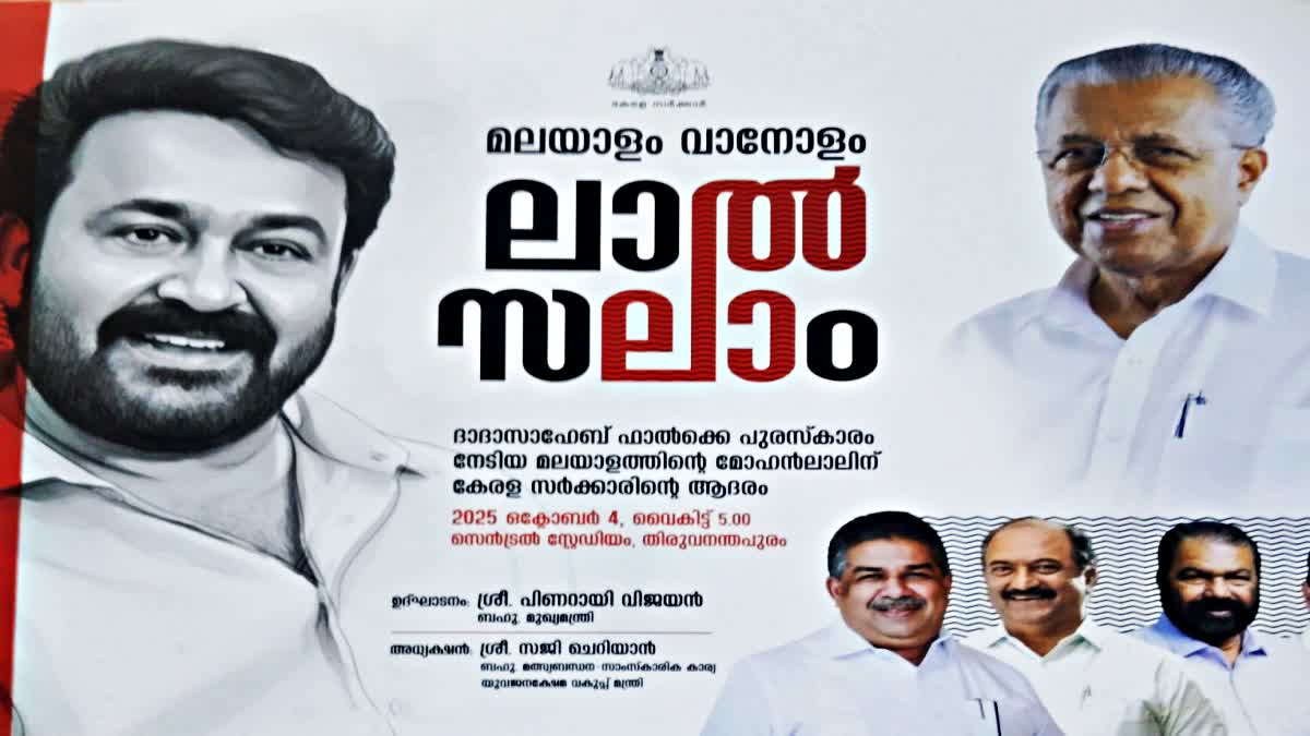 തിരുവനന്തപുരം: രാജ്യത്തെ പരമോന്നത ചലച്ചിത്ര ബഹുമതിയായ ദാദാസാഹേബ് ഫാൽക്കെ അവാർഡ് നേടിയ മഹാനടൻ മോഹൻലാലിനെ ആദരിക്കുന്നതിനായി കേരള സർക്കാർ സംഘടിപ്പിക്കുന്ന ‘മലയാളം വാനോളം ലാൽ സലാം’ പരിപാടി നാളെ വൈകുന്നേരം 4.30 മുതൽ തിരുവനന്തപുരം സെൻട്രൽ സ്റ്റേഡിയത്തിൽ നടക്കും. പരിപാടിയുടെ എല്ലാ ഒരുക്കങ്ങളും പൂർത്തിയായതായി സാംസ്കാരിക മന്ത്രി സജി ചെറിയാൻ പൊതുവിദ്യാഭ്യാസ, തൊഴിൽ മന്ത്രി വി. ശിവൻകുട്ടിയുടെ സാന്നിധ്യത്തിൽ സെക്രട്ടേറിയറ്റ് പി.ആർ. ചേംബറിൽ നടന്ന പത്രസമ്മേളനത്തിൽ അറിയിച്ചു. ആദരവ് ചടങ്ങിന്റെ ഉദ്ഘാടനം നിർവഹിക്കുന്ന മുഖ്യമന്ത്രി പിണറായി വിജയൻ സംസ്ഥാന സർക്കാരിന് വേണ്ടി മോഹൻലാലിനെ ആദരിക്കും. കവി പ്രഭാവർമ്മ രചിച്ച പ്രശസ്തിപത്രം മുഖ്യമന്ത്രി മോഹൻലാലിന് സമർപ്പിക്കും. ഈ പ്രശസ്തിപത്രത്തിലെ വരികൾ ഗായിക ലക്ഷ്മിദാസ് കവിതാരൂപത്തിൽ ആലപിക്കും. മന്ത്രി വി. ശിവൻകുട്ടി അധ്യക്ഷത വഹിക്കും. മന്ത്രി സജി ചെറിയാൻ സ്വാഗതം ആശംസിക്കുന്ന ചടങ്ങിൽ മന്ത്രിമാരായ കെ.എൻ ബാലഗോപാൽ, ജി. ആർ…