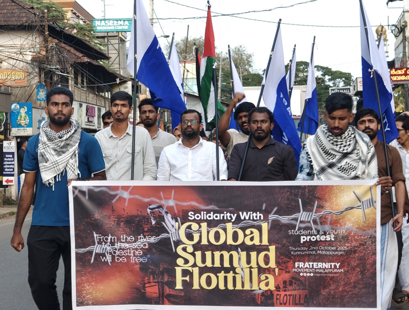 മലപ്പുറം : സയണിസ്റ്റ് വംശഹത്യയെ പ്രതിരോധിക്കുന്ന ഫലസ്തീനികളോടുള്ള ലോക മനസാക്ഷിയുടെ പ്രതീകമാണ് ഗ്ലോബൽ സുമൂദ് ഫ്ലോട്ടിലയെന്ന് ഫ്രറ്റേണിറ്റി സംസ്ഥാന സെക്രട്ടറിയേറ്റംഗം ഫയാസ് ഹബീബ് പറഞ്ഞു. ഫ്രറ്റേണിറ്റി മലപ്പുറം ജില്ല കമ്മിറ്റി സംഘടിപ്പിച്ച സോളിഡാരിറ്റി വിത്ത് സുമോദ് ഫ്ലോട്ടിലാ ഉദ്ഘാടനം ചെയ്ത് സംസാരിക്കുകയായിരുന്നു അദ്ദേഹം. ഫ്രറ്റേണിറ്റി മലപ്പുറം ജില്ല പ്രസിഡന്റ് വി ടി എസ് ഉമർ തങ്ങൾ അധ്യക്ഷത വഹിച്ചു. ജില്ല ജനറൽ സെക്രട്ടറി അമീൻ യാസിർ മുഖ്യപ്രഭാഷണം നടത്തി. ജില്ല ജനറൽ സെക്രട്ടറി കെ പി ഹാദി ഹസ്സൻ, സംസ്ഥാന കമ്മിറ്റി അംഗം സബീൽ ചെമ്പ്രശ്ശേരി ജില്ല വൈസ് പ്രസിഡന്റ് പി സുജിത്ത്, സെക്രട്ടറിമാരായ ഷാറൂൺ അഹ്മദ് കോട്ടക്കൽ, വി.കെ മാഹിർ, അസ്ലം പള്ളിപ്പടി, അജ്മൽ തോട്ടോളി, ഫായിസ് മാള, അറഫാത്ത് മങ്കട, സാജിത വടക്കാങ്ങര തുടങ്ങിയവർ സംസാരിച്ചു.