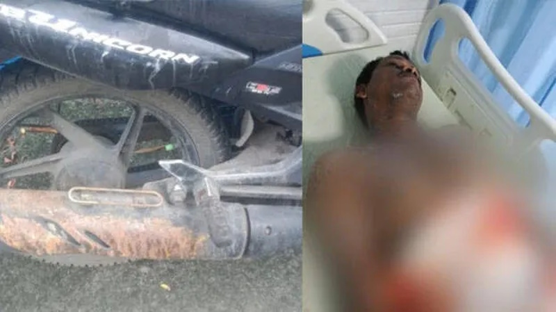 ഓടിക്കൊണ്ടിരുന്ന ലോറിയിൽ നിന്ന് ആസിഡ് തെറിച്ചു വീണ് മോട്ടോർ സൈക്കിൾ യാത്രക്കാരന് പൊള്ളലേറ്റു