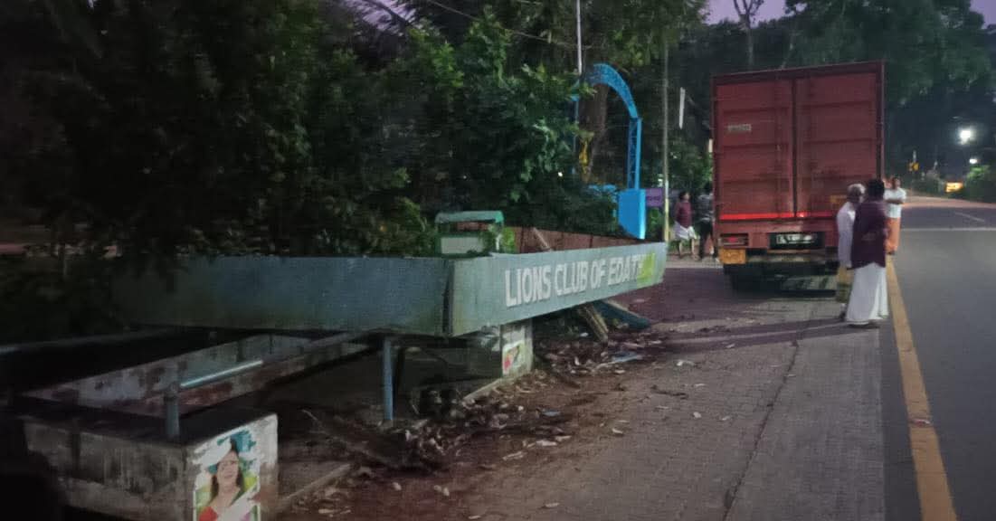 തലവടി പിഎച്ച്സി ജംഗ്ഷനിലെ ഇരുമ്പ് റൂഫിൽ നിർമ്മിച്ച കാത്തിരിപ്പ് കേന്ദ്രം ലോറി തട്ടി തകർന്നു