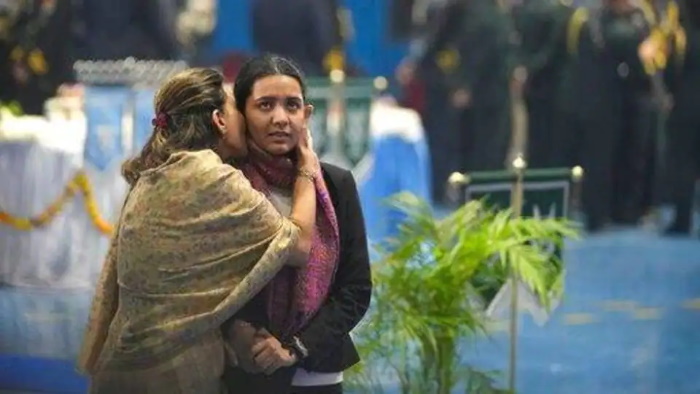 After paying tributes by PM Modi and other leaders and military officers, the atmosphere turned gloomy when the family members and daughters of the martyrs started paying homage. Meanwhile, the daughter of Brigadier LS Lidder, who was killed in the helicopter crash, reached the father’s coffin. After her father reached in front of the coffin, she stood for some time and then bowed down and kissed his coffin. Heart-wrenching scenes were witnessed at Palam airport.