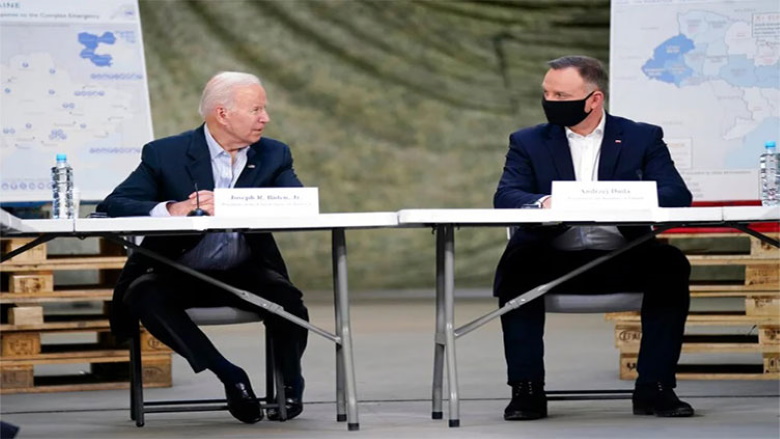 Biden spoke at meetings with US soldiers stationed in Poland close to the border and with aid workers helping to deal with the massive refugee crisis caused by the conflict in Ukraine.