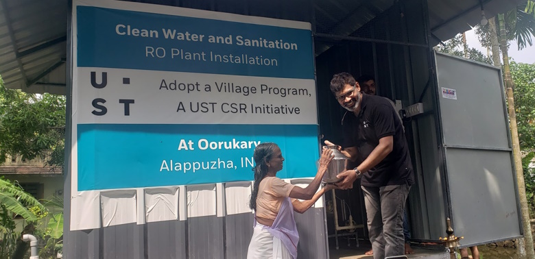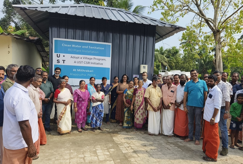 The plants will now be the source of water for drinking, cooking, and other domestic purposes for 1000 families, comprising around 5000 people in Mithrakary, and 500 families, comprising around 2500 people in Oorukary. The UST Kochi CSR team, consisting of Prasanth Subramanian, CSR Ambassador – UST Kochi, and other CSR leads Deepa Chandran, Shine Varghese, Deepesh Chandran, and Manoj Muralidharan, were present at the inauguration. Panchayat members of Mithrakary and Oorukary villages, along with the local people, participated in the functions at the two villages. A few social workers and residents at Kuttanad, provided local support for the project.
