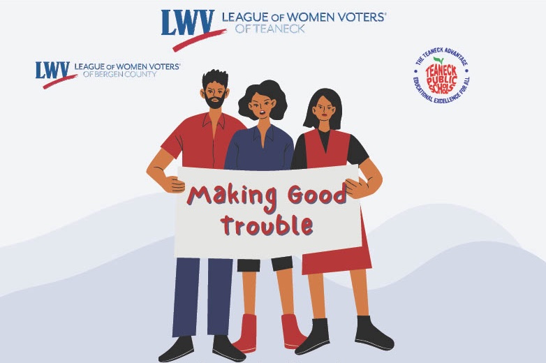 (Eastern Bergen County, New Jersey) — The League of Women Voters of Teaneck in partnership with the Teaneck Public Schools and the League of Women Voters of Bergen County will celebrate Women’s History Month with a panel discussion, “Making Good Trouble”, on Wednesday, March 20, 2024 from 7:30 p.m. to 9:00 p.m. The panel discussion will be held at Teaneck High School on the second floor in the Media Center located at 100 Elizabeth Avenue in Teaneck, New Jersey.