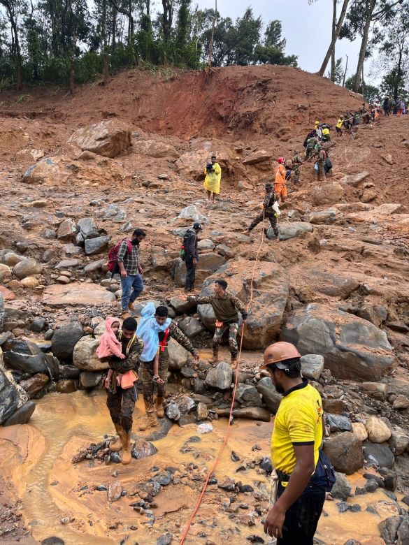 The team including the medical team from 91 Infantry Battalion reached Mepadi in the morning via Kozhikode. A team of Madras Engineering Group consisting of one officer, two JCOs and 120 soldiers arrived at 2.30 am on Wednesday with materials for the construction of the bridge. The rest of the materials, including the 110-foot set for the Bailey bridge being built at Churalmala, were delivered by noon. The three expert sniffer dogs brought from Delhi were brought to Wayanad via Kannur.