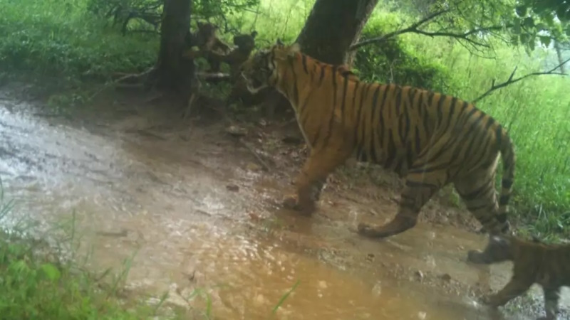 The touching photograph of Tigress Siddhi and her three cubs was captured by a photo trap camera set up by the forest department in Ranthambore’s Kundera range. This camera trap is part of the park’s ongoing efforts to monitor and protect its wildlife.