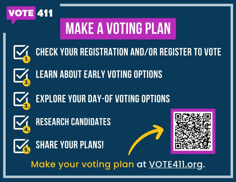 (Eastern Bergen County, New Jersey; September 25, 2024) — The League of Women Voters of Northern Valley (LWVNV) wants citizens to be informed to participate in New Jersey’s General Election on November 5. The League is working to ensure voters find accurate, nonpartisan election information on the voting resource site, VOTE411.org. To prepare voters in Bergen County with the tools they need to do for the General Election, the LWVNV developed ‘Make a Voting Plan’.