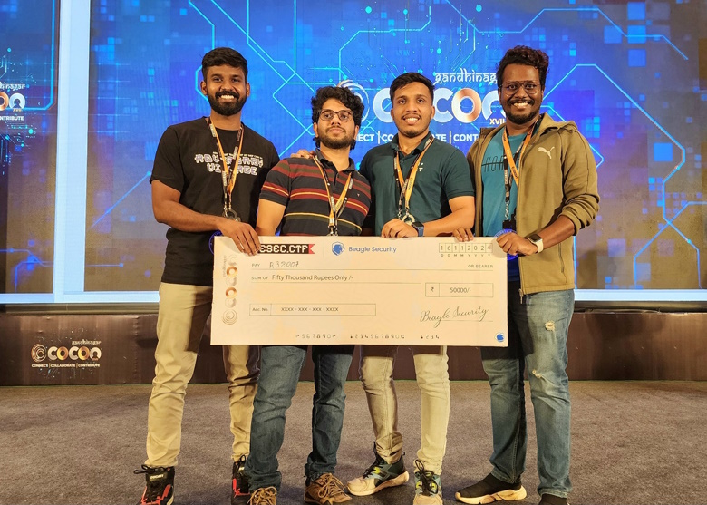 Led by Shine Mohammed, Information Security Lead, and Anand Sreekumar, Information Security Analyst, Team R38007, emerged as the winner while Team localgho5t, led by Shibin B Shaji, Information Security Lead, and Gokul Krishna S, Information Security Analyst, secured the first runner-up position. Vishnu Prasad P G, Information Security Lead, and Athul Nair, Information Security Analyst of Team Cyber Ninjas, finished as the second runner-up. The winning team received the prize from David Baptiste, Researcher ERNW Germany, and Rejah Rehim, CEO of Beagle Security. All the three winning teams are from the Information Security (IS) division of UST.