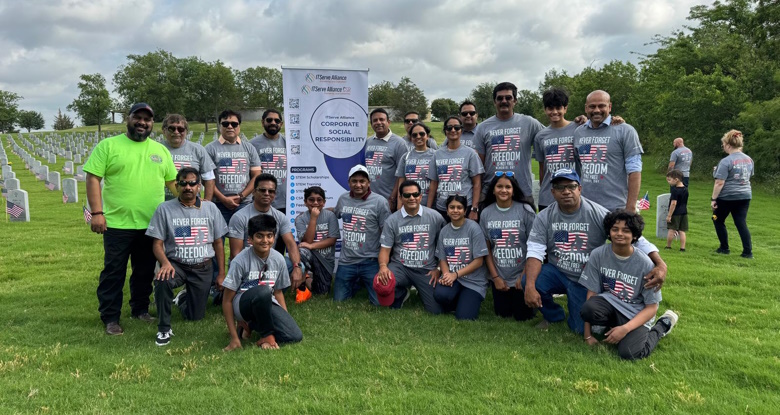 ITServe Alliance Team Dallas had the distinguished honor of having Raghu Chittimalla, Governing Board Chair; Anju Vallbhaneni, National President; and Jagadeesh Mosali, Immediate past President of ITServe during the ceremony, where the Dallas Chapter members gathered at the DFW National Cemetery, placing National Flags for the Fallen Heroes on Memorial Day.