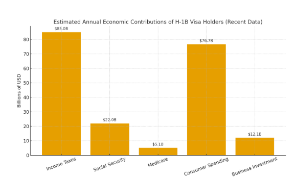- H-1B visa holders pay billions in federal, state, and local taxes while contributing to Social Security and Medicare.